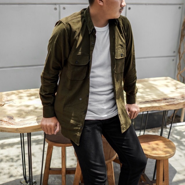 Baju Batik Pria Lengan Panjang Kemeja Seragam Kantor Busana Muslim Cowok
